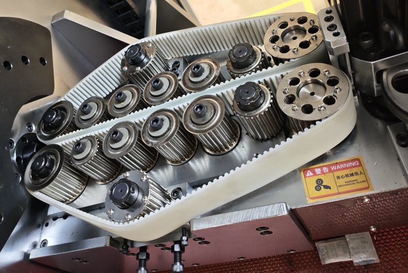 1、送料機構采用履帶式結構,能夠更好的與銅鋁排絕緣層表面貼合增加附著力推動送線確保送線精度,切換不同線徑生產(chǎn)無需更換送料輪,調節(jié)行程即可。