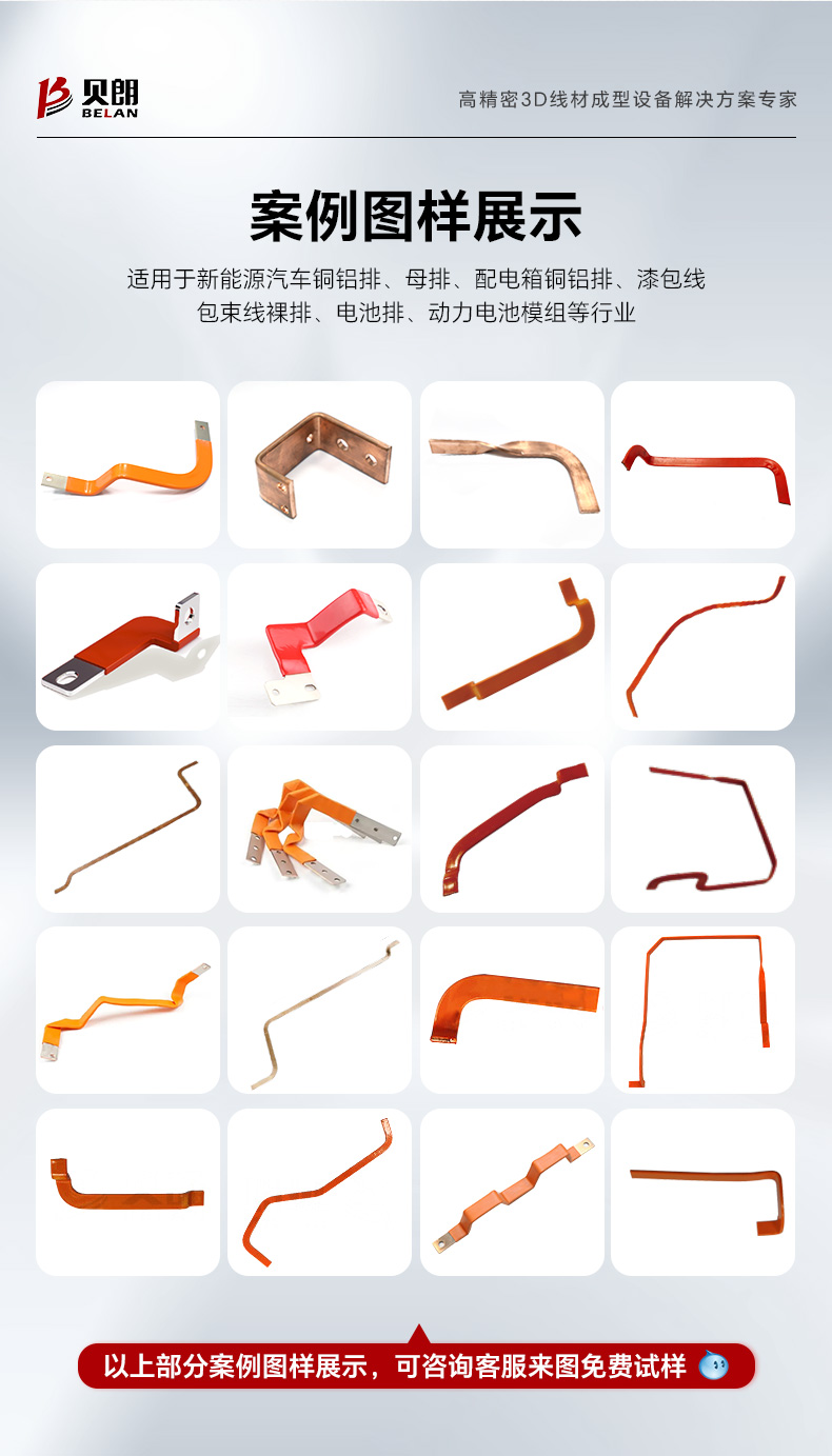 8、該設(shè)備是專門(mén)針對(duì)銅、鋁排自動(dòng)折彎成型的一款設(shè)備,適用于生產(chǎn):新能源汽車(chē)銅鋁排、母排、配電箱銅鋁排、
