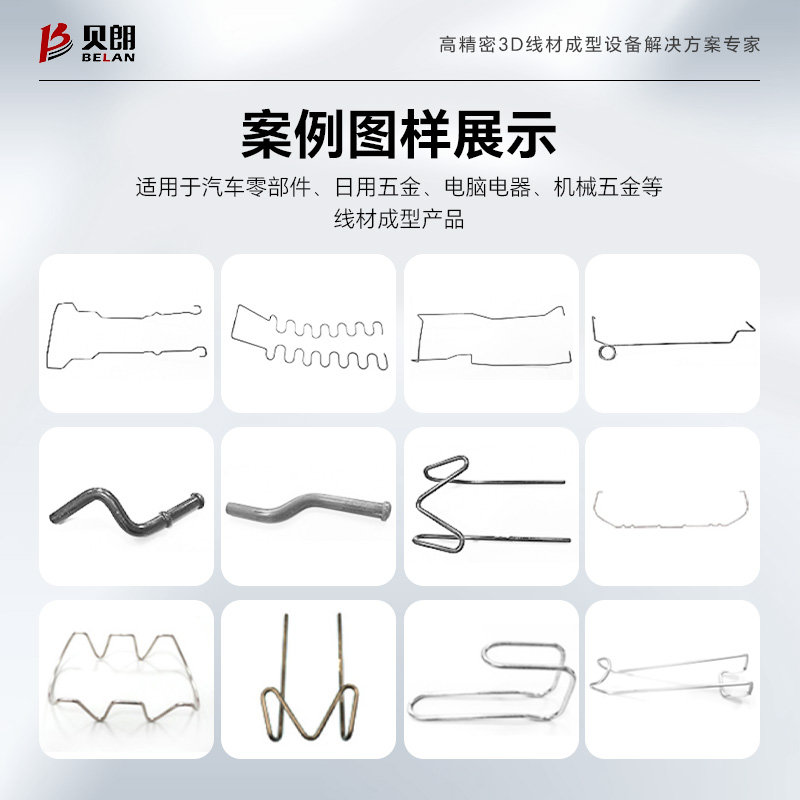 產(chǎn)品特點(diǎn):適用于生產(chǎn)汽車零部件、日用五金、電腦電器、機(jī)械五金等線材成型產(chǎn)品,從產(chǎn)品結(jié)構(gòu)上來(lái)講更適合生產(chǎn)框架類的產(chǎn)品,平板支撐更穩(wěn)定;設(shè)備帶有折彎、平移功能,能夠成型大部分高難度3D產(chǎn)品,可切換多種不同R角。