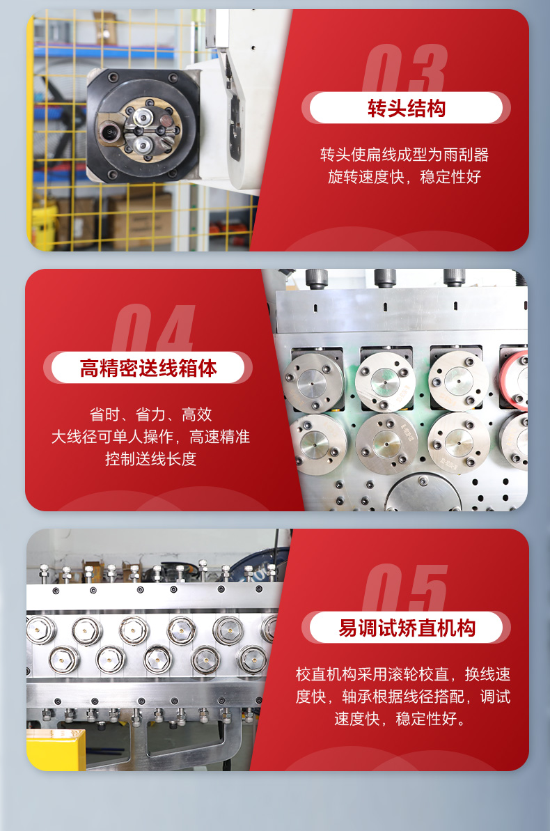 4.送線采用4組外徑120送線輪,送線自帶編碼器控制補(bǔ)償送線精度。